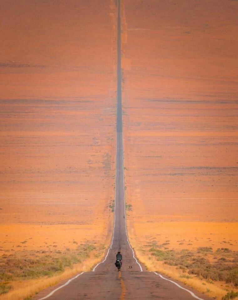 ・この道を走った人は地球が丸い説を信じなかっただろう。どこまで行っても平らだ